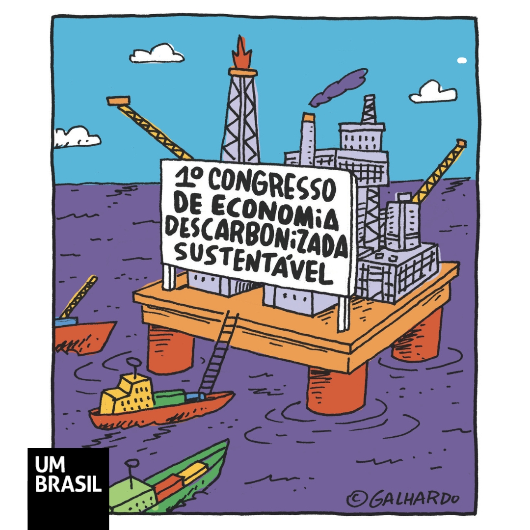 Em entrevista ao Canal UM BRASIL, ilustrada pela charge de Caco Galhardo, Tavares defende mudanças na política de financiamento da transição energética. “É fundamental que o Brasil crie condições para que as receitas do petróleo financiem a era ‘pós-petróleo’, ou seja, a descarbonização”, explica.